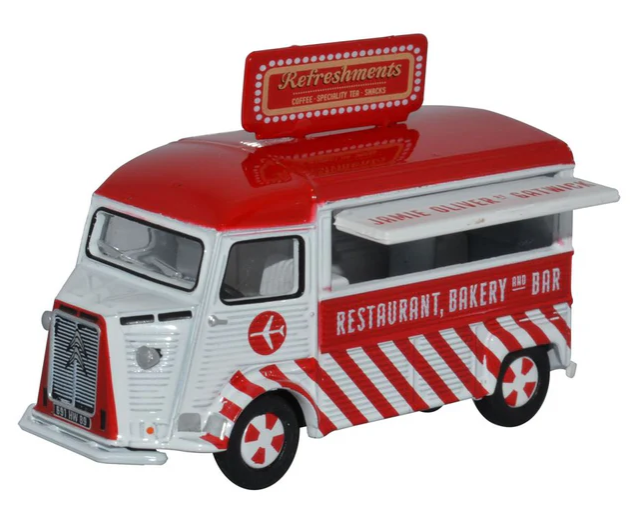 De Citroën H Van is gebouwd van 1947 tot in 1982, totaal zijn er 475.000 van deze "golfplaat-carrosserie" lichte vrachtauto gebouwd. Vele van deze auto's zijn direct of in een latere fase omgebouwd tot foodtruck. Dit model is een voor Jamie Oliver Italian Ices omgebouwde foodtruck. Registratienummer OLIVER.